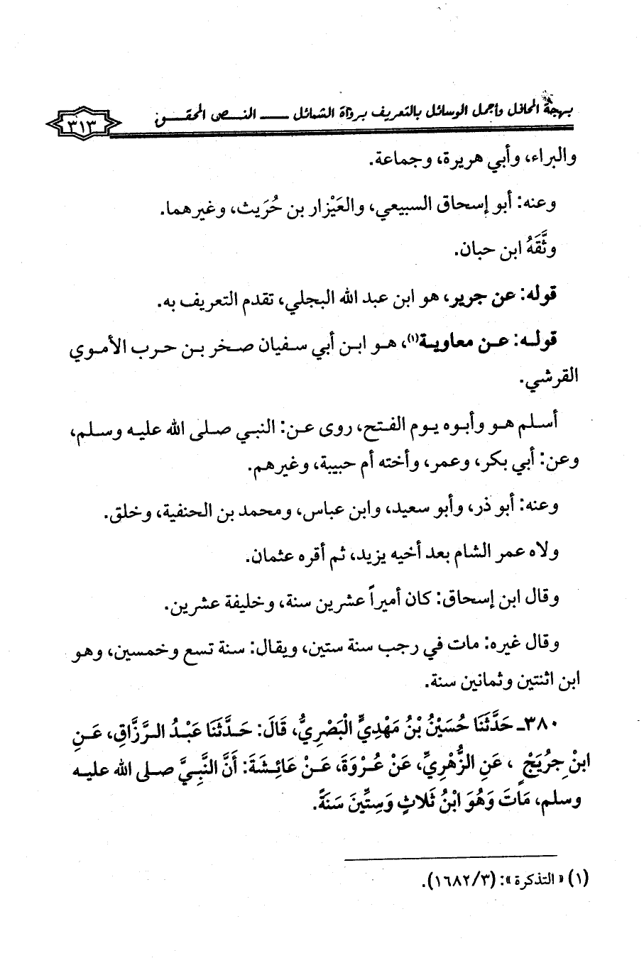 380 - حَدَّثَنَا حُسَيْنُ بْنُ مَهْدِيٍّ الْبَصْرِيُّ، قَالَ: حَدَّثَنَا عَبْدُ الرَّزَّاقِ، عَنِ ابْنِ جُرَيْجٍ، عَنِ الزُّهْرِيِّ، عَنْ عُرْوَةَ، عَنْ عَائِشَةَ: أَنَّ النَّبِيَّ صلى الله عليه وسلم، مَاتَ وَهُوَ ابْنُ ثَلاثٍ وَسِتِّينَ سَنَةً.