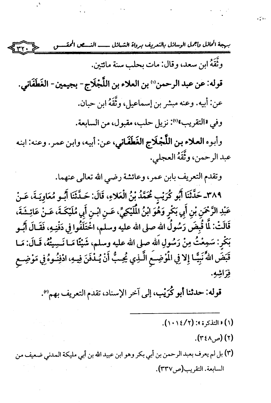 (¬3) بل لم يعرف بعبد الرحمن بن أبي بكر وهو ابن عبيد الله بن أبي مليكة المدني ضعيف من السابعة. التقريب (ص337).