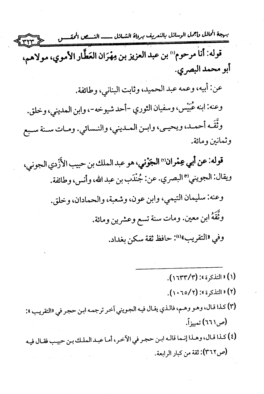 (¬3) كذا قال، وهو وهم، فالذي يقال فيه الجويني آخر ترجمه ابن حجر في «التقريب»: (ص661) تمييزاً.