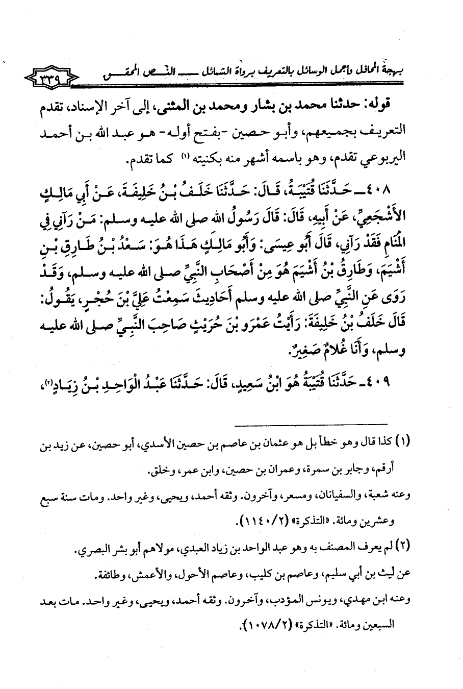 409 - حَدَّثَنَا قُتَيْبَةُ هُوَ ابْنُ سَعِيدٍ، قَالَ: حَدَّثَنَا عَبْدُ الْوَاحِدِ بْنُ زِيَادٍ (¬2)،