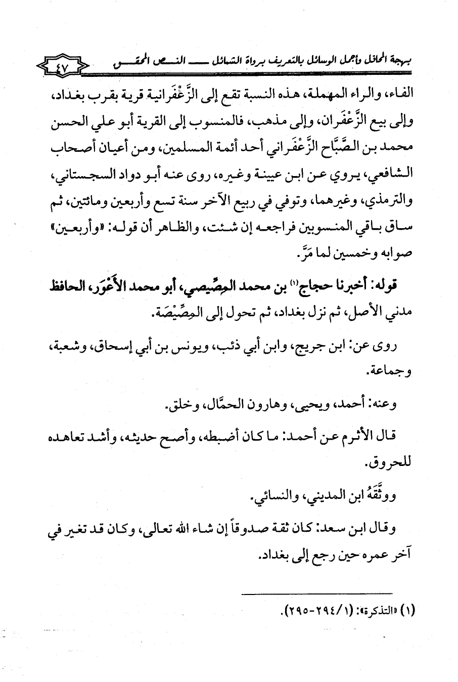 قوله: أخبرنا حجاج (¬1) بن محمد المِصِّيصي، أبو محمد الأَعْوَر، الحافظ مدني الأصل، ثم نزل بغداد، ثم تحول إلى المِصِّيْصَة.