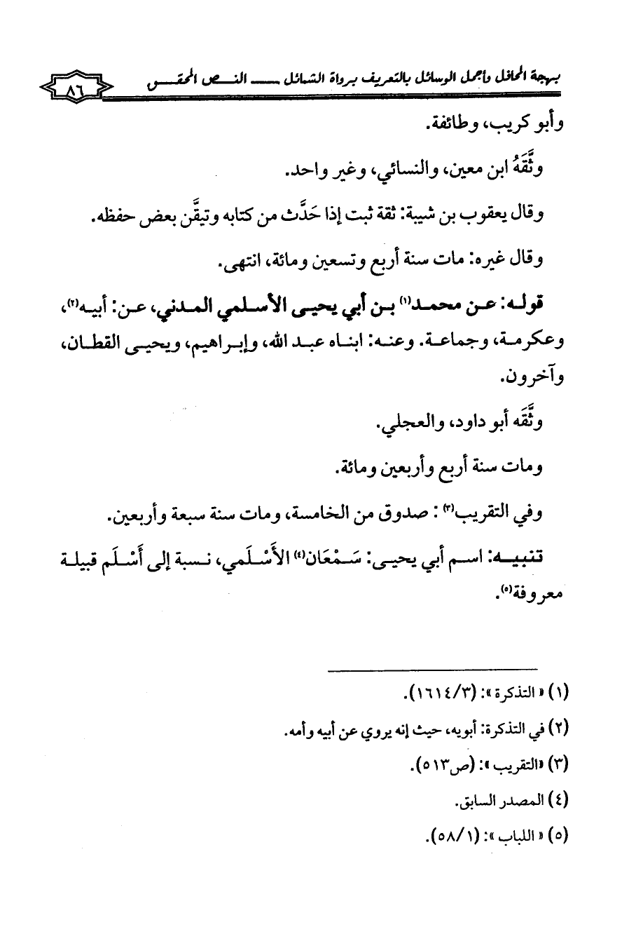تنبيه: اسم أبي يحيى: سَمْعَان (¬4) الأَسْلَمي، نسبة إلى أَسْلَم قبيلة معروفة (¬5).