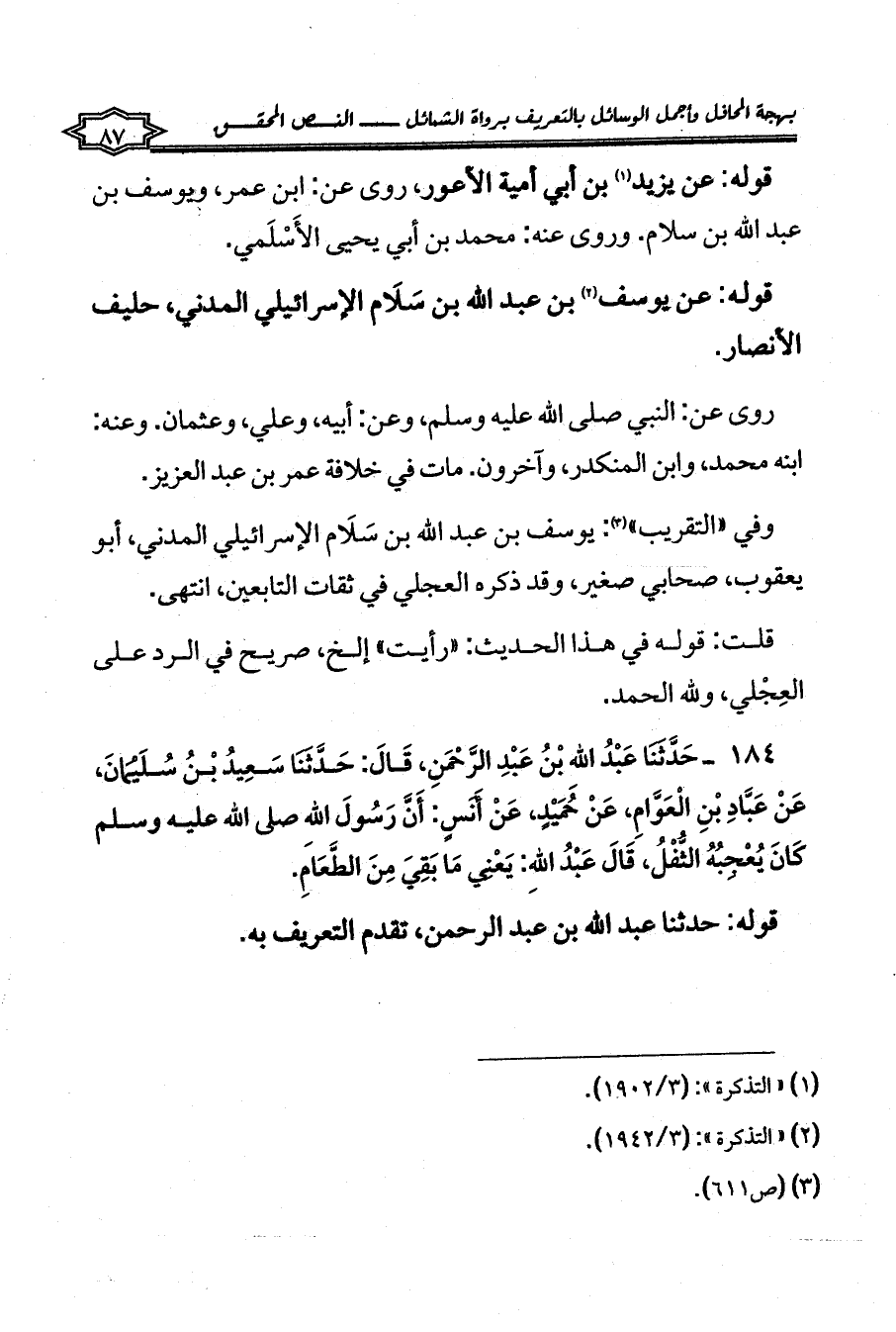 قوله: عن يوسف (¬2) بن عبد الله بن سَلَام الإسرائيلي المدني، حليف الأنصار.