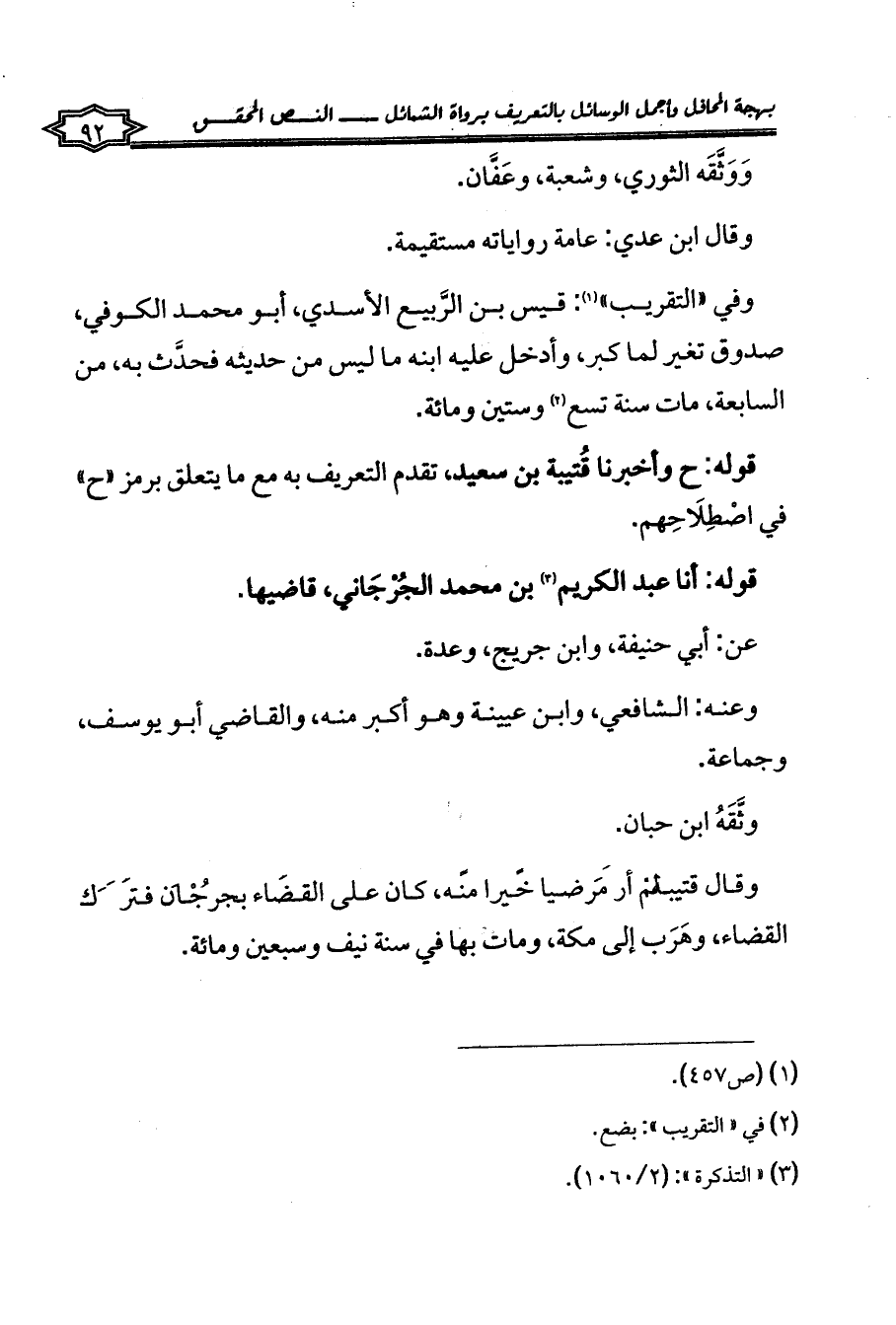 وفي «التقريب» (¬1): قيس بن الرَّبيع الأسدي، أبو محمد الكوفي، صدوق تغير لما كبر، وأدخل عليه ابنه ما ليس من حديثه فحدَّث به، من السابعة، مات سنة تسع (¬2) وستين ومائة.
