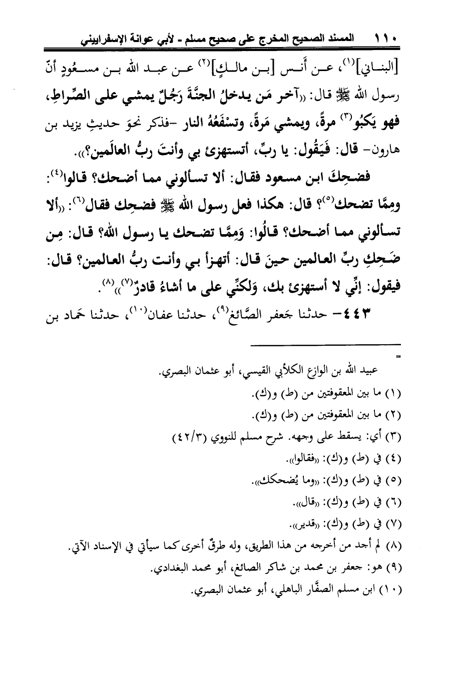 (¬4) أخرجه مسلم في كتاب الإيمان -باب آخر أهل النار خروجًا (1/ 174 ح 310) عن أبي بكر بن أبي شيبة عن عفان بن مسلم به.