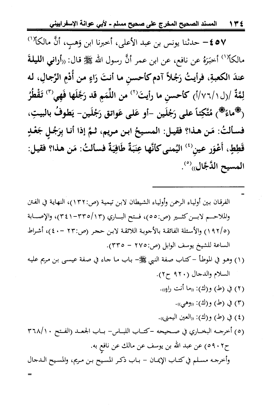 (¬1) وهو في الموطأ -كتاب صفة النبي -صلى الله عليه وسلم-باب ما جاء في صفة عيسى بن مريم عليه السلام والدجال (920 ح 2).