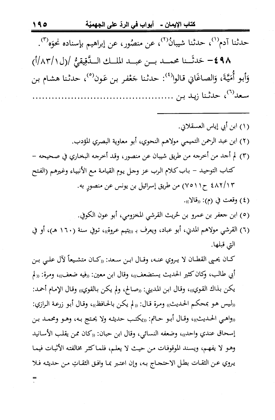 وأخرجه ابن منده في كتاب "الإيمان" (797) من طريق عبد الملك الدقيقي -شيخ المصنف- عن جعفر بن عون به.