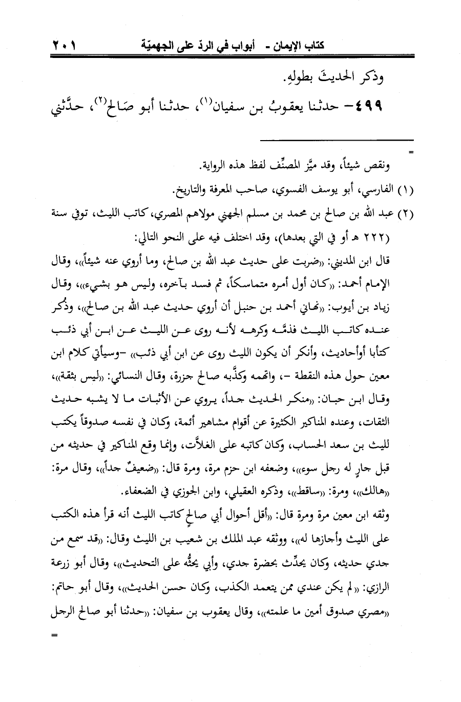 499 - حدثنا يعقوبُ بن سفيان (¬1)، حدثنا أبو صَالح (¬2)، حدَّثني