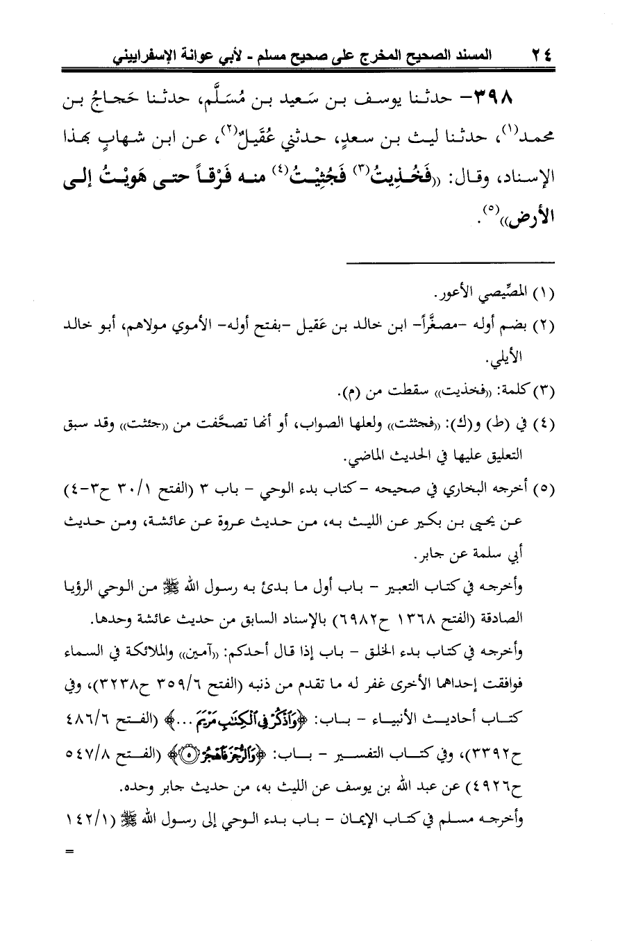 -[25]- = ح 254) عن عبد الملك بن شعيب بن الليث عن أبيه عن جده به، من حديث عروة عن عائشة، وأخرجه أيضًا بالإسناد نفسه (ح 256) من حديث أبي سلمة عن جابر.