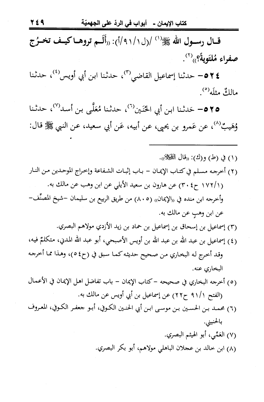 (¬3) أخرجه البخاري في صحيحه -كتاب الإيمان- باب تفاضل أهل الإيمان في الأعمال (الفتح 1/ 91 ح 22) عن إسماعيل بن أبي أويس عن مالك به.