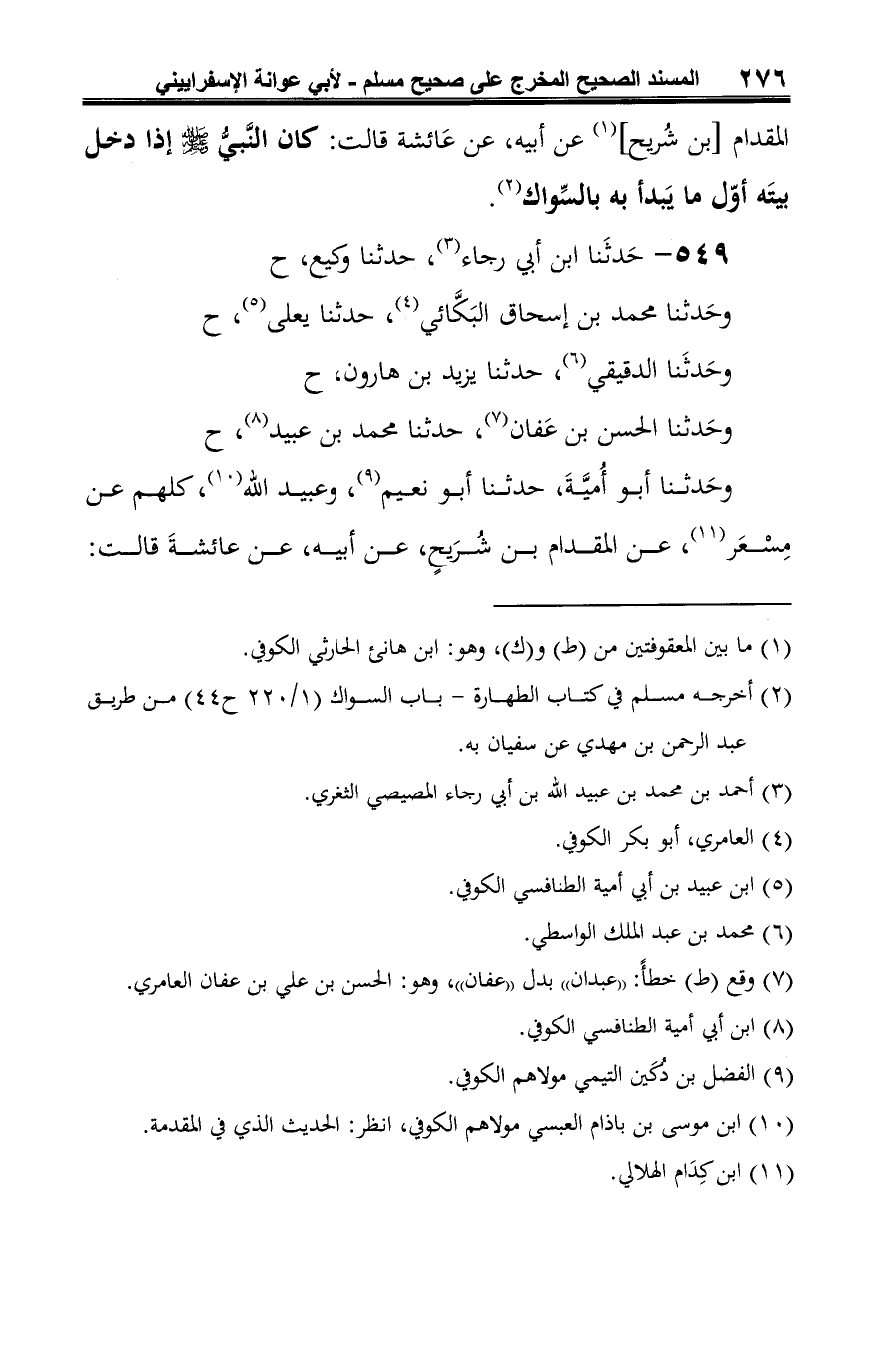 (¬11) أخرجه مسلم في كتاب الطهارة -باب السواك (1/ 220 ح 43) من طريق محمد بن بشر عن مسعر بن كدامٍ به.