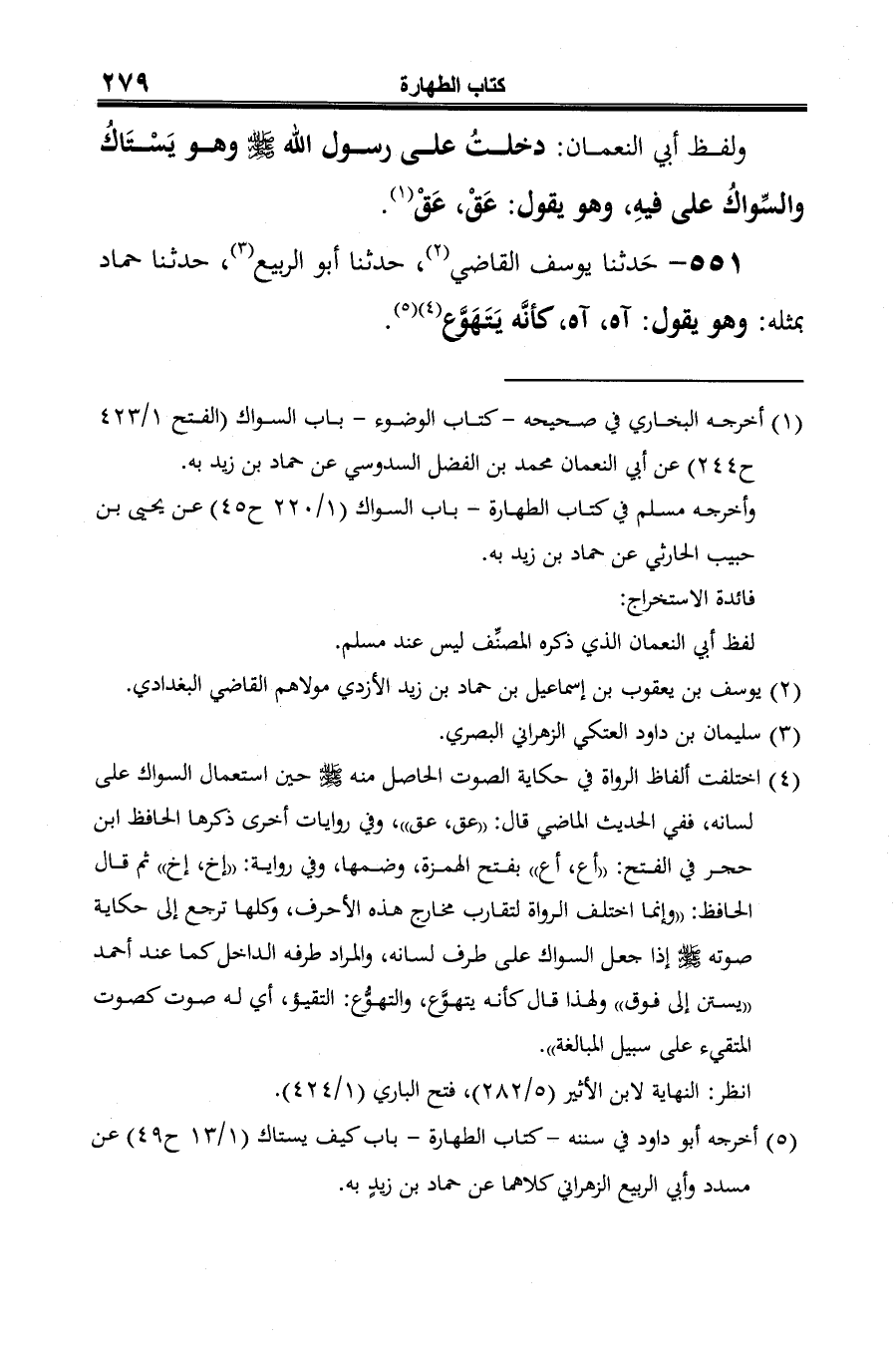 (¬4) أخرجه أبو داود في سننه -كتاب الطهارة- باب كيف يستاك (1/ 13 ح 49) عن مسدد وأبي الربيع الزهراني كلاهما عن حماد بن زيدٍ به.