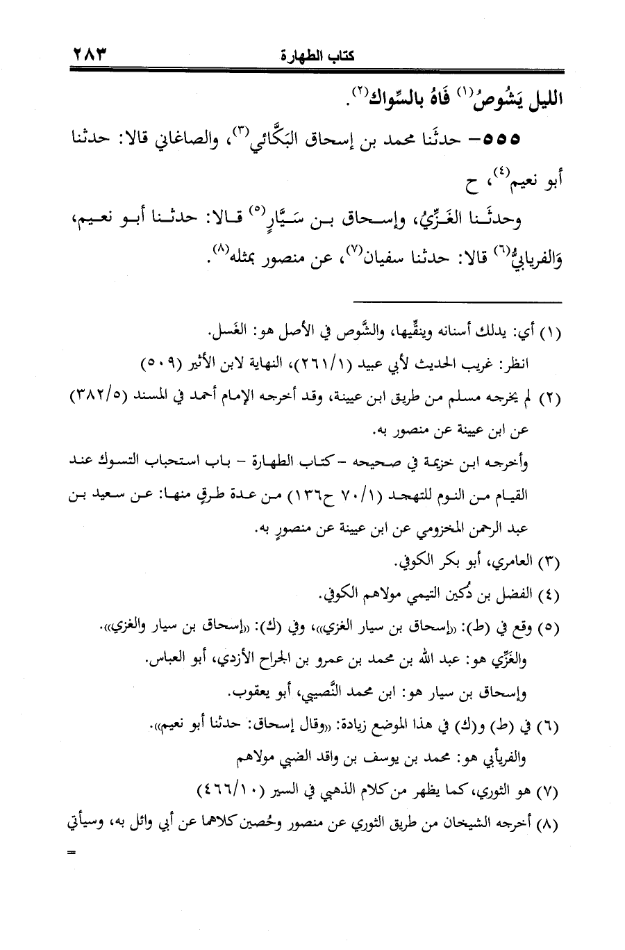 وحدثَنا الغَزِّيُ، وإسحاق بن سَيَّارٍ (¬3) قالا: حدثنا أبو نعيم، وَالفريابي (¬4) قالا: حدثنا سفيان (¬5)، عن منصور بمثله (¬6).