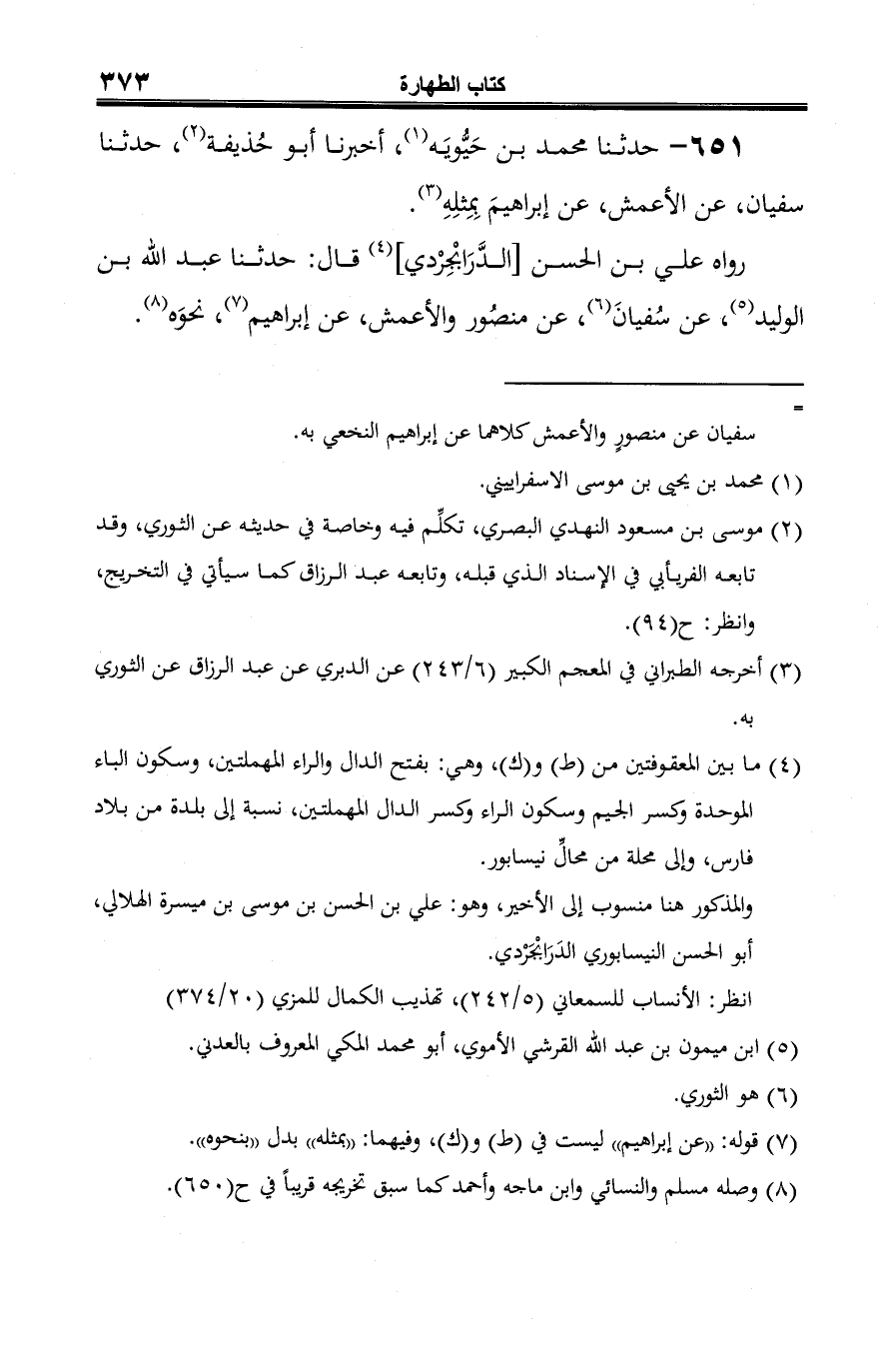 651 - حدثنا محمد بن حَيُّويَه (¬1)، أخبرنا أبو حُذيفة (¬2)، حدثنا سفيان، عن الأعمش، عن إبراهيمَ بِمِثلِهِ (¬3).