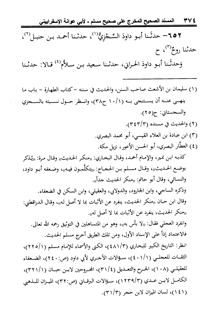 652 - حدثَنا أبو داودَ السِّجْزِيُّ (¬1)، حدثنا أحمد بن حنبل (¬2)، حدثنا روحٌ (¬3)، ح