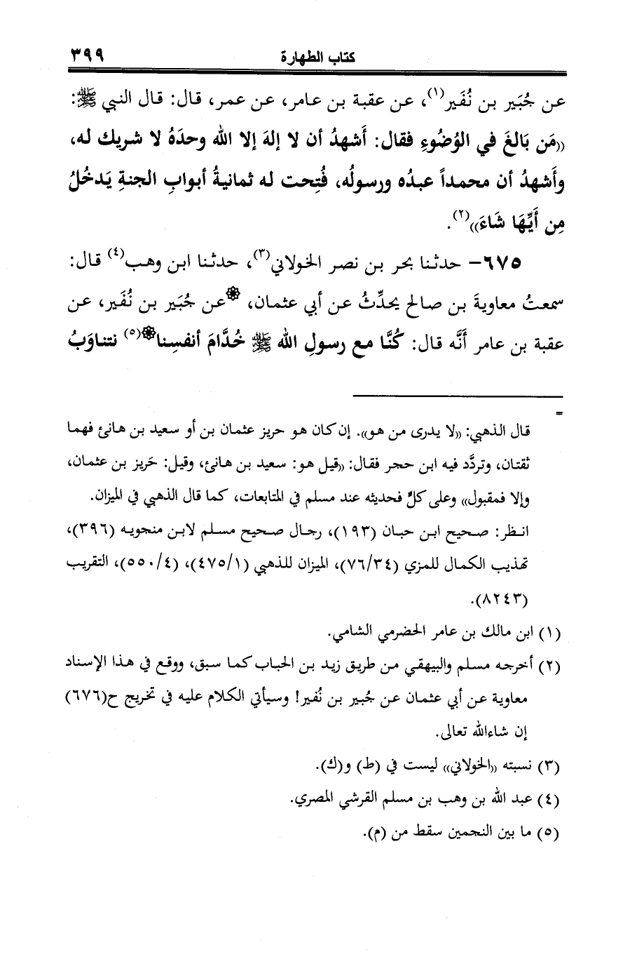 وأخرجه ابن حبّان في صحيحه (193) من طريق حرملة بن يحيى كلاهما، عن عبد الله بن وهب عن معاوية بن صالح، عن أبي عثمان عن جُبير بن نُفير عن عقبة بن عامرٍ به.