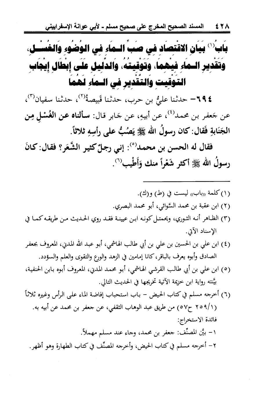 1 - بيِّن المصنِّف: جعفر بن محمّد، وجاء عند مسلم مهملًا.