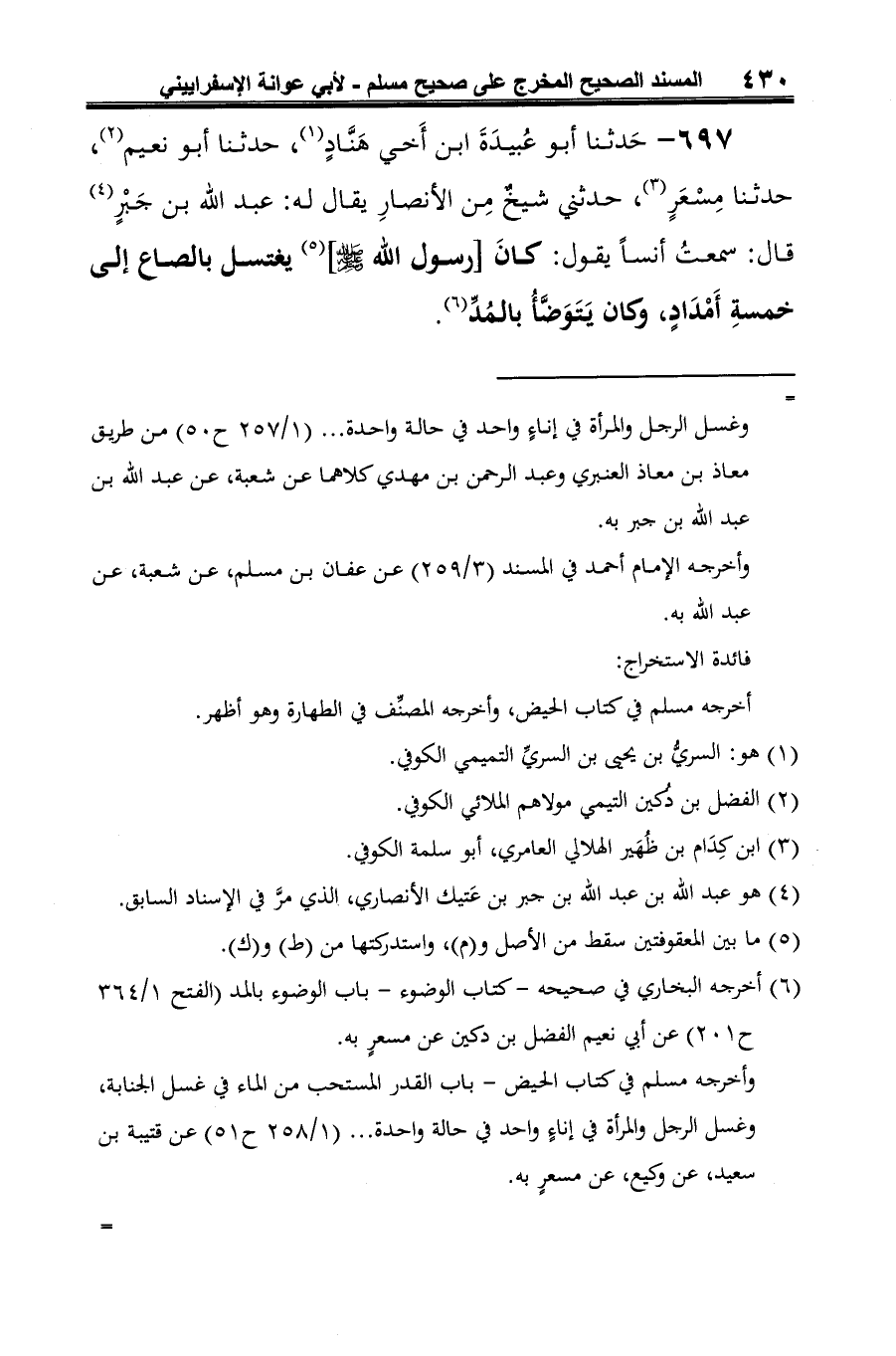 (¬6) أخرجه البخاريّ في صحيحه -كتاب الوضوء -باب الوضوء بالمد (الفتح 1/ 364 ح 201) عن أبي نعيم الفضل بن دكين عن مسعرٍ به.