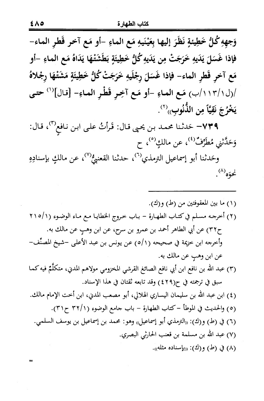 739 - حَدثنا محمّد بن يحيى قال: قَرأتُ على ابن نافعٍ (¬1)، قال: وَحَدَّثني مُطَرِّفٌ (¬2)، عن مالكٍ (¬3)، ح