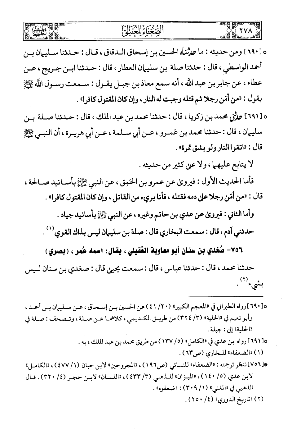 (1) [690] رواه الطبراني في «المعجم الكبير» (20/ 41) عن الحسين بن إسحاق، عن سليمان بن أحمد، وأبو نعيم في «الحلية» (3/ 324) من طريق الكديمي، كلاهما عن صلة، وتصحف: صلة في «الحلية» إلى: جبلة.
