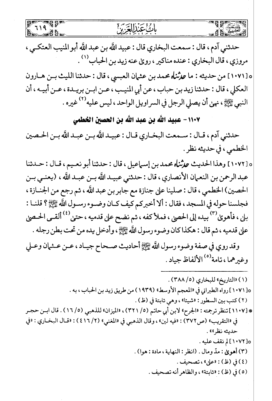 (4) * [1107] تنظر ترجمته: «الجرح» لابن أبي حاتم (5/ 321)، «الميزان» للذهبي (5/ 16). قال ابن حجر في «التقريب» (ص372): «فيه لين» , وقال الذهبي في «المغني» (2/ 416): «قال البخاري: «في حديثه نظر»».