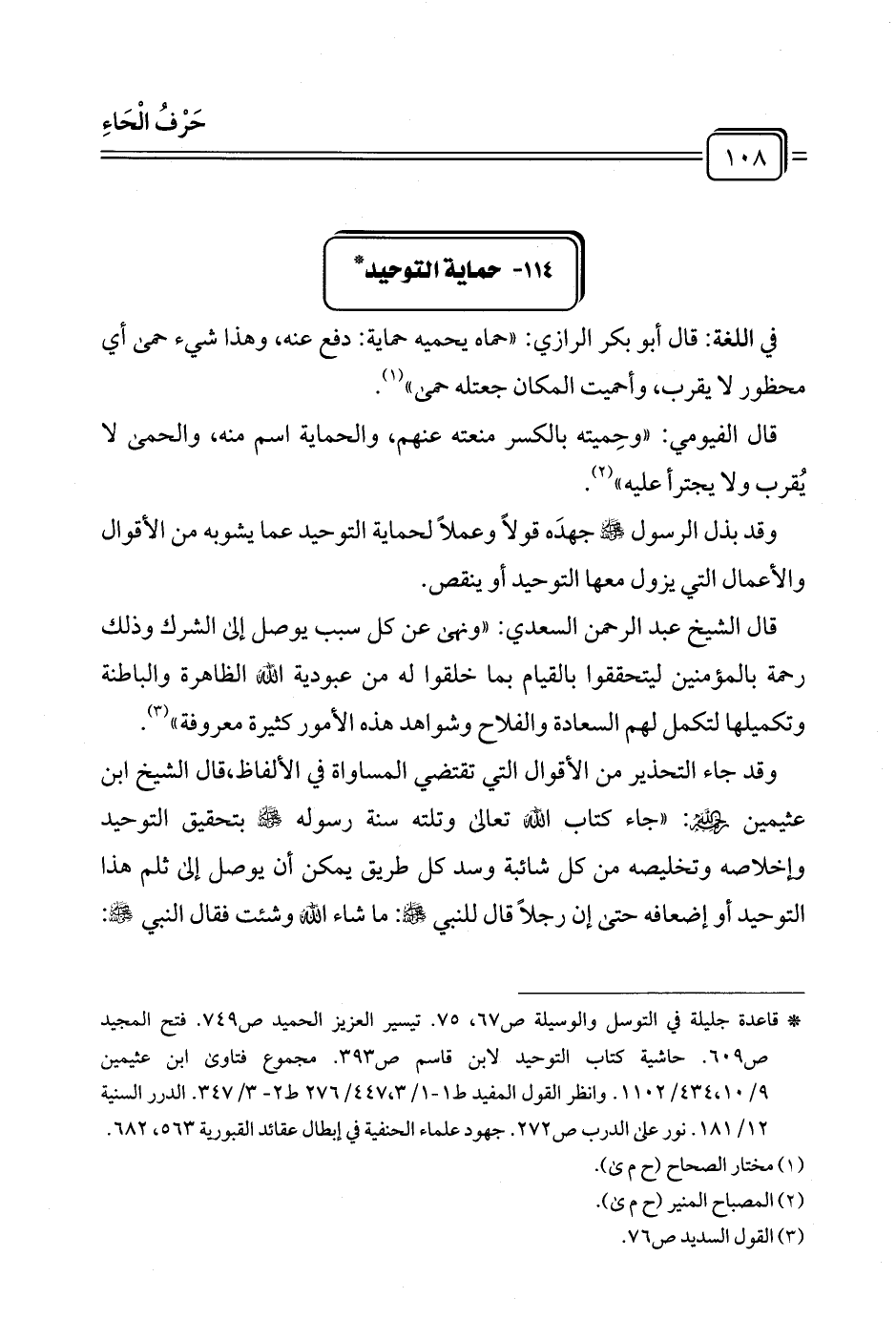 وقد بذل الرسول - صلى الله عليه وسلم - جهدَه قولًا وعملًا لحماية التوحيد عما يشوبه من الأقوال والأعمال التي يزول معها التوحيد أو ينقص.