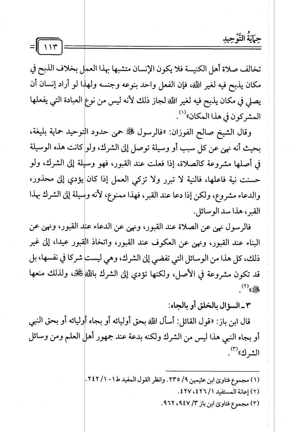 (¬١) مجموع فتاوى ابن عثيمين ٩/ ٢٣٥. وانظر القول المفيد ط ١ - ١/ ٢٤٢.