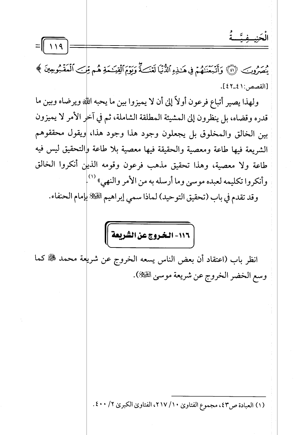 ١١٦ - الخروج عن الشريعة