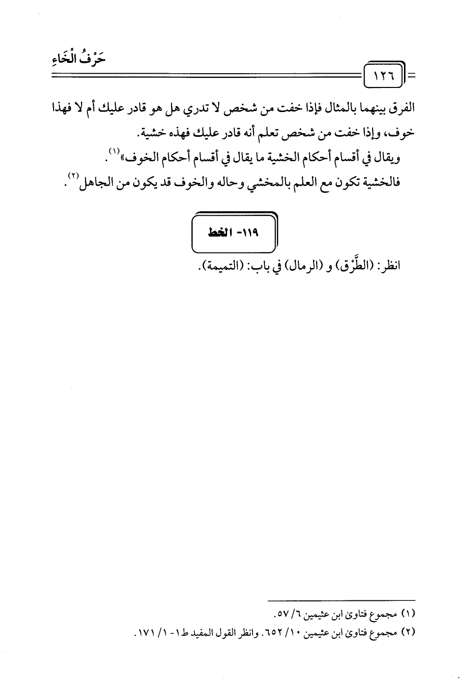 (¬٢) مجموع فتاوى ابن عثيمين ١٠/ ٦٥٢. وانظر القول المفيد ط ١ - ١/ ١٧١.