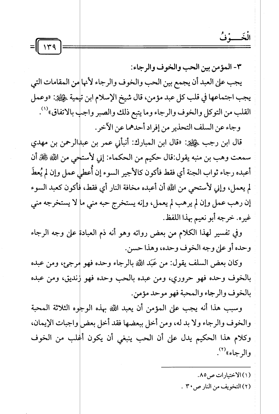 ٣ - المؤمن بين الحب والخوف والرجاء: