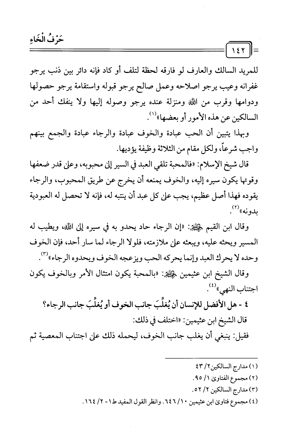 (¬٤) مجموع فتاوى ابن عثيمين ١٠/ ٦٤٦. وانظر القول المفيد ط ١ - ٢/ ١٦٤.