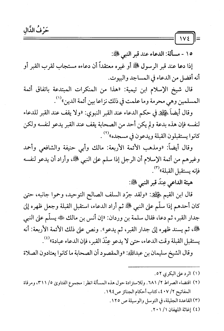 ١٥ - مسألة: الدعاء عند قبر النبي - صلى الله عليه وسلم -: