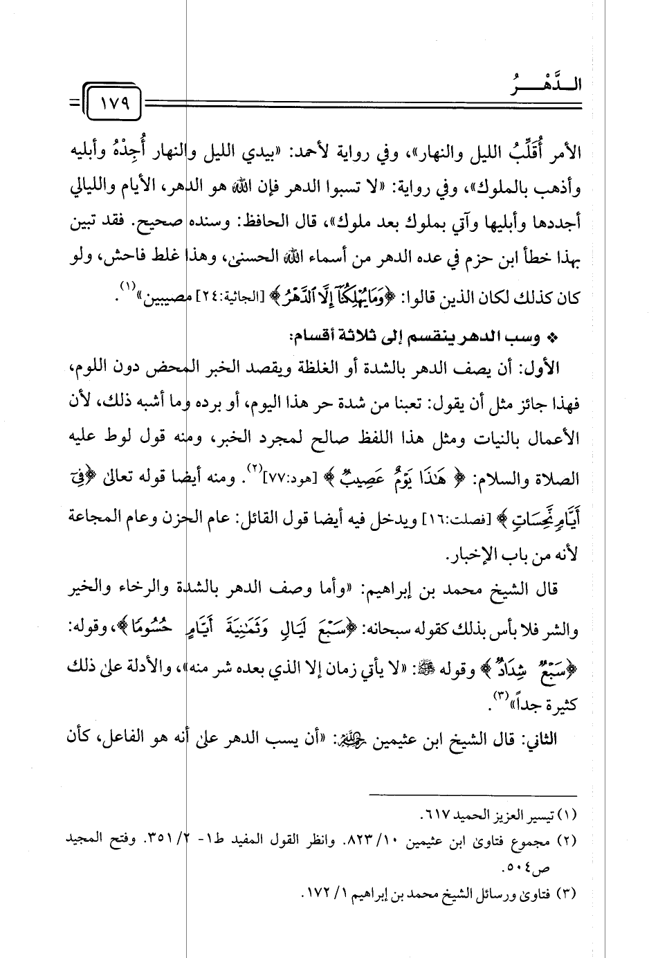 * وسب الدهر ينقسم إلى ثلاثة أقسام: