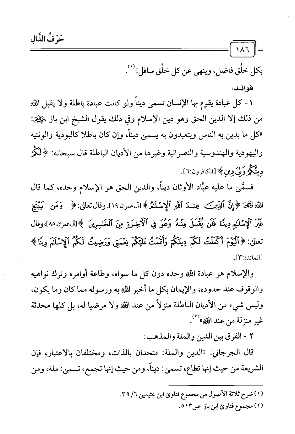 (¬١) شرح ثلاثة الأصول من مجموع فتاوى ابن عثيمين ٦/ ٣٩.