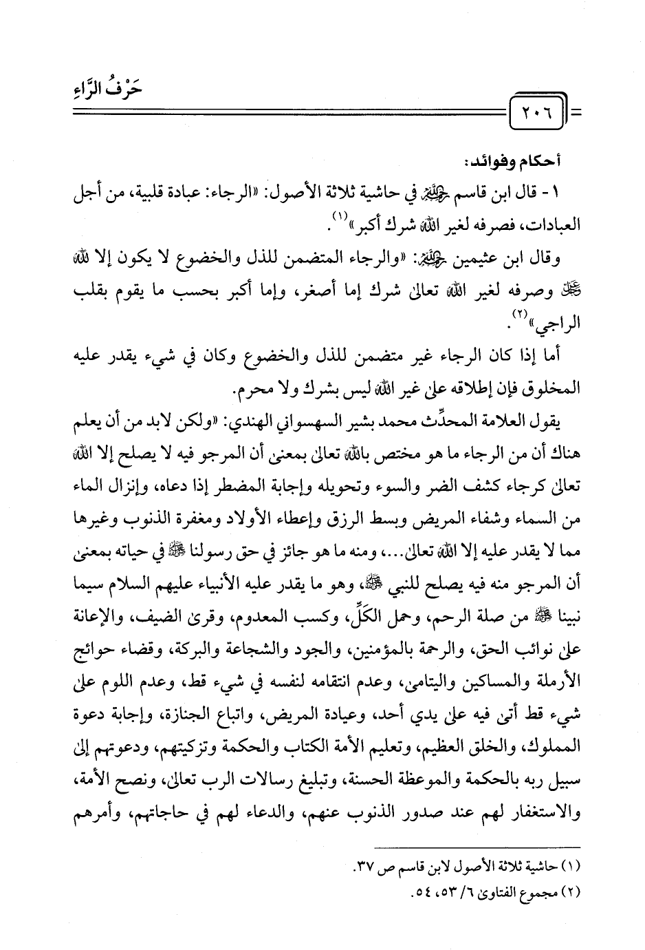 (¬١) حاشية ثلاثة الأصول لابن قاسم ص ٣٧.