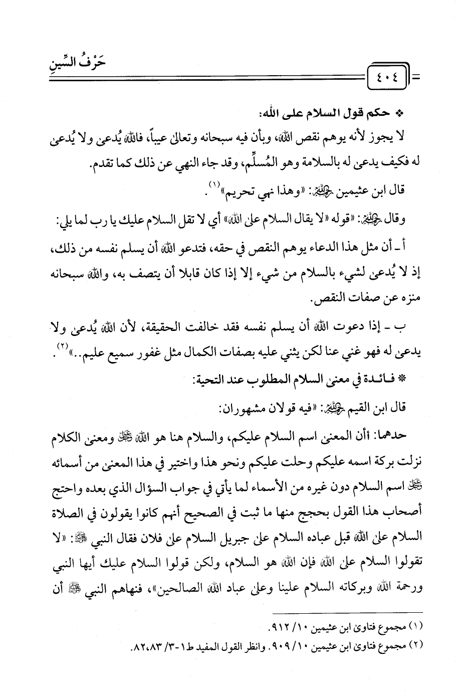 ب - إذا دعوت الله أن يسلم نفسه فقد خالفت الحقيقة، لأن الله يُدعى ولا يدعى له فهو غني عنا لكن يثني عليه بصفات الكمال مثل غفور سميع عليم .. " (¬٢).