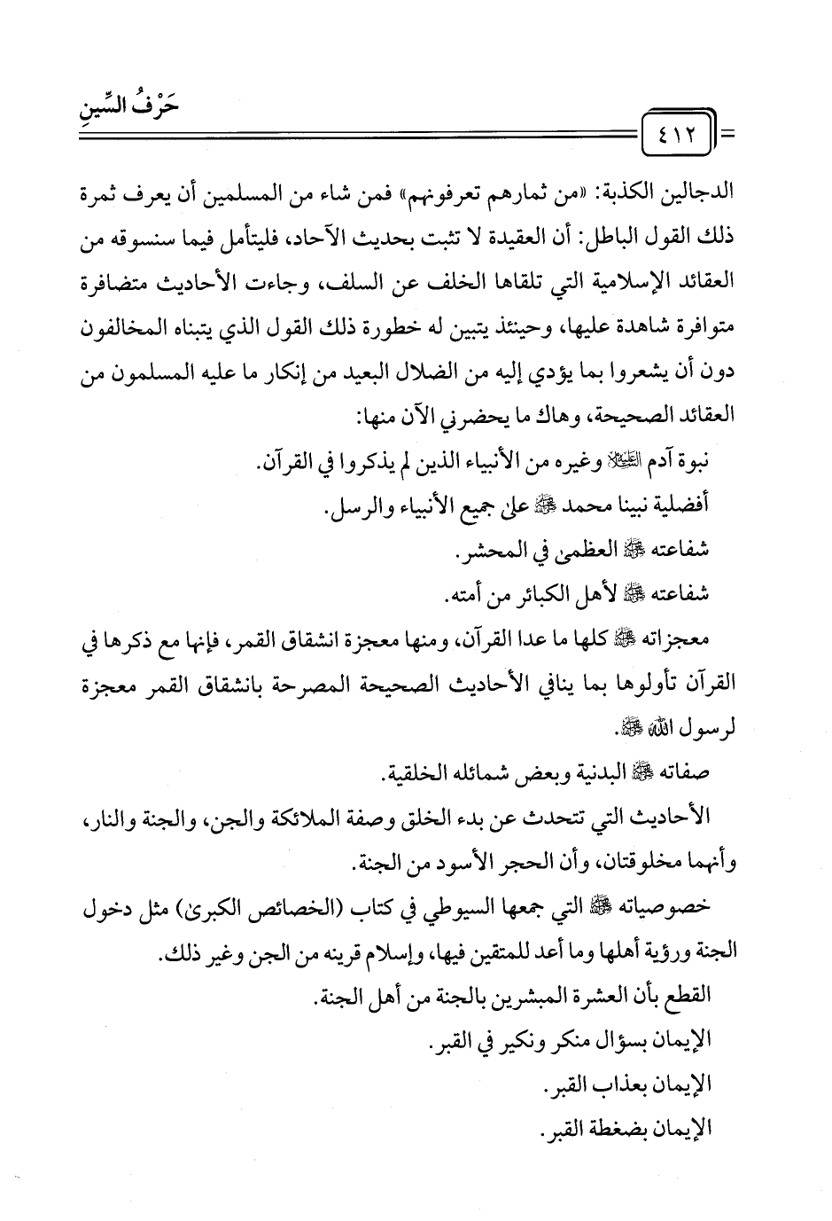 خصوصياته - صلى الله عليه وسلم - التي جمعها السيوطي في كتاب (الخصائص الكبرى) مثل دخول الجنة ورؤية أهلها وما أعد للمتقين فيها، وإسلام قرينه من الجن وغير ذلك.