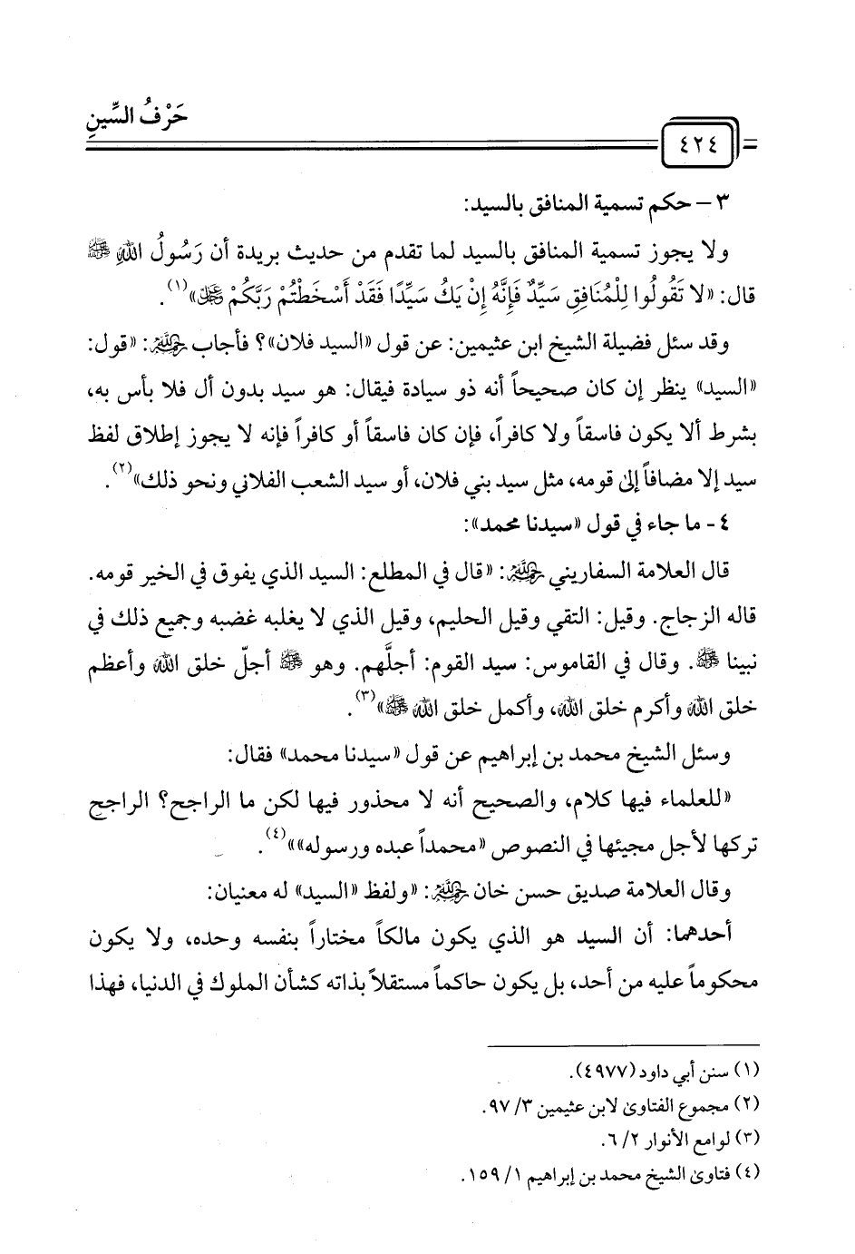 ٣ - حكم تسمية المنافق بالسيد: