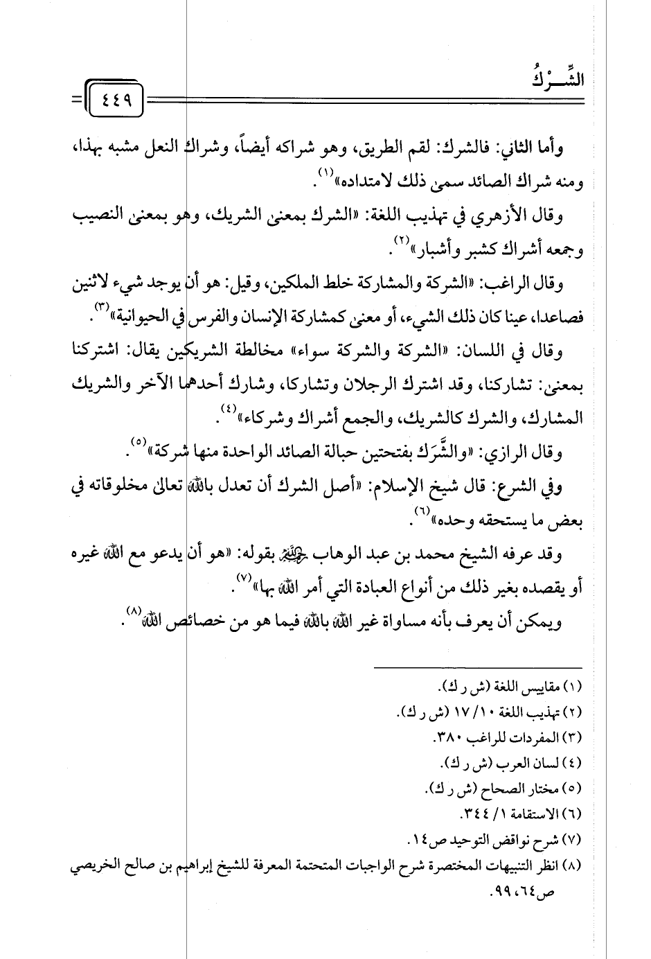 (¬٢) تهذيب اللغة ١٠/ ١٧ (ش ر ك).