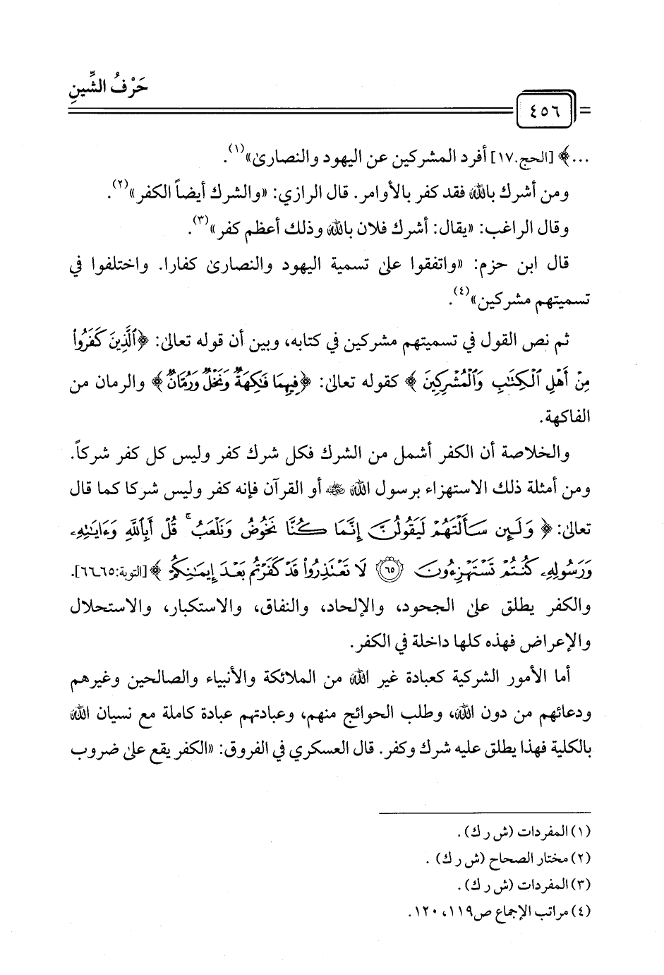 وقال الراغب: "يقال: أشرك فلان بالله وذلك أعظم كفر" (¬٣).