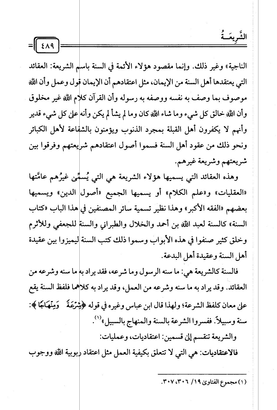 (¬١) مجموع الفتاوى ١٩/ ٣٠٦، ٣٠٧.