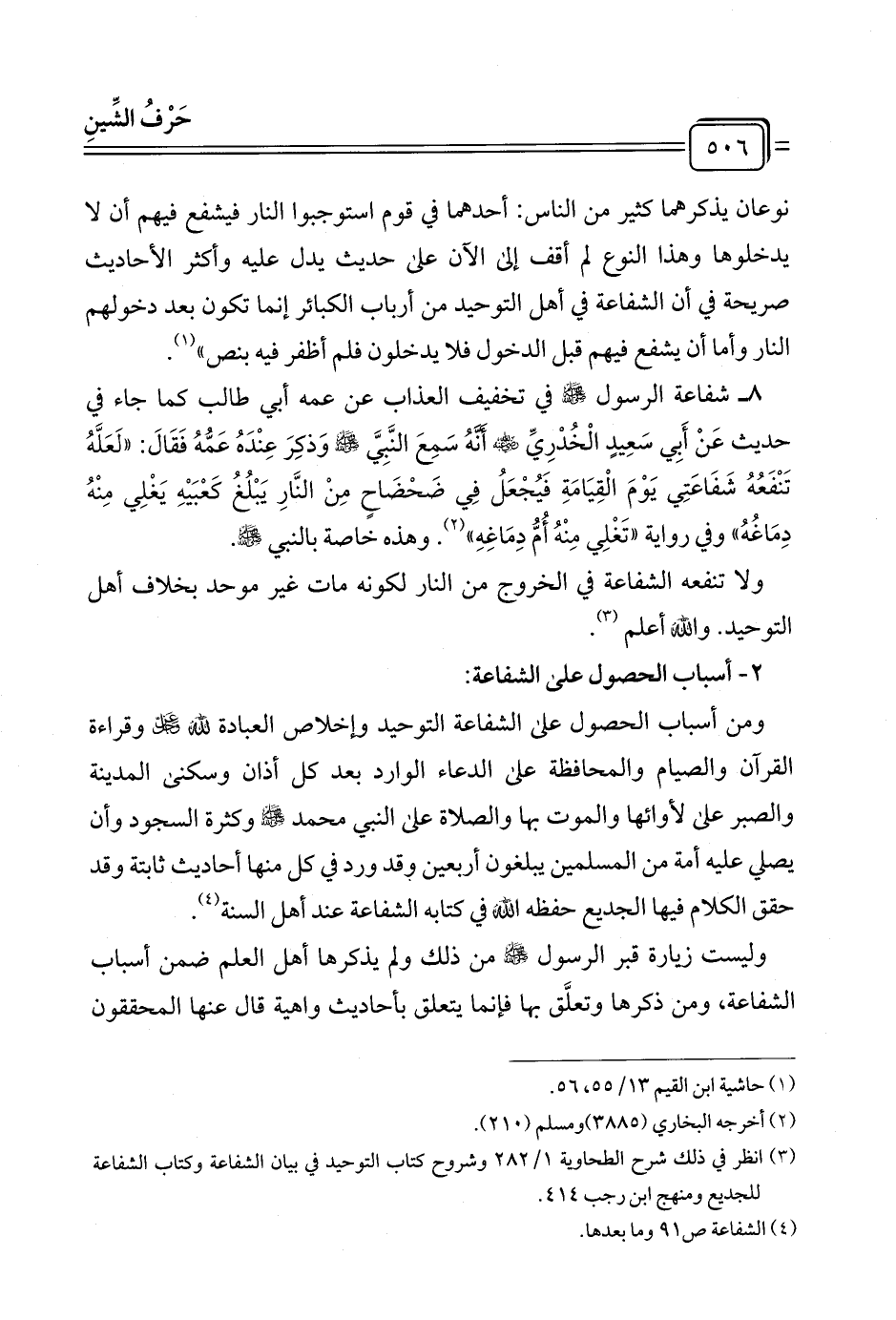 (¬٣) انظر في ذلك شرح الطحاوية ١/ ٢٨٢ وشروح كتاب التوحيد في بيان الشفاعة وكتاب الشفاعة للجديع ومنهج ابن رجب ٤١٤.