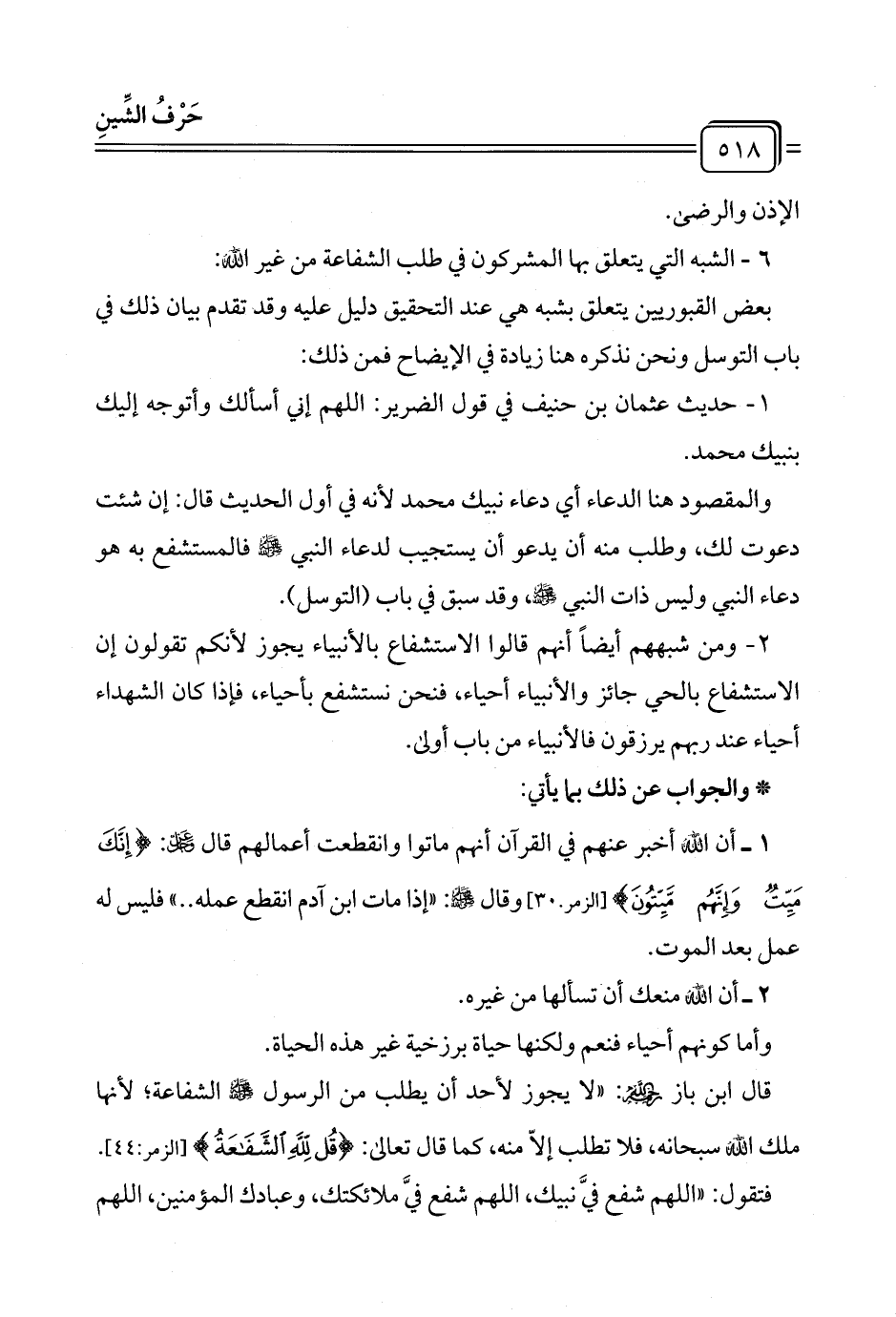 ٢ - ومن شبههم أيضًا أنهم قالوا الاستشفاع بالأنبياء يجوز لأنكم تقولون إن الاستشفاع بالحي جائز والأنبياء أحياء، فنحن نستشفع بأحياء، فإذا كان الشهداء أحياء عند ربهم يرزقون فالأنبياء من باب أولى.