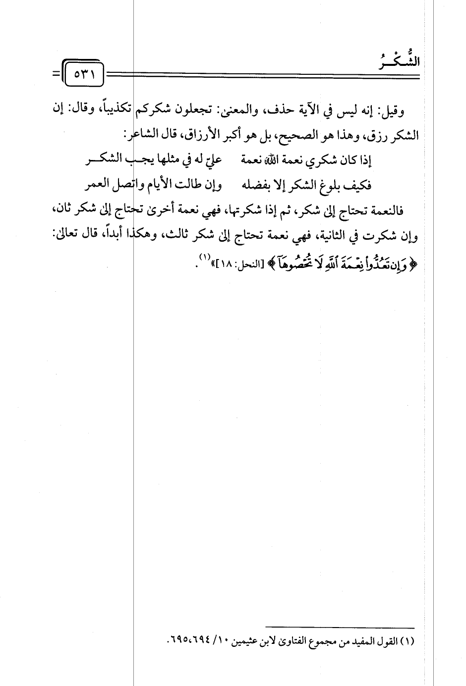 (¬١) القول المفيد من مجموع الفتاوى لابن عثيمين ١٠/ ٦٩٤، ٦٩٥.