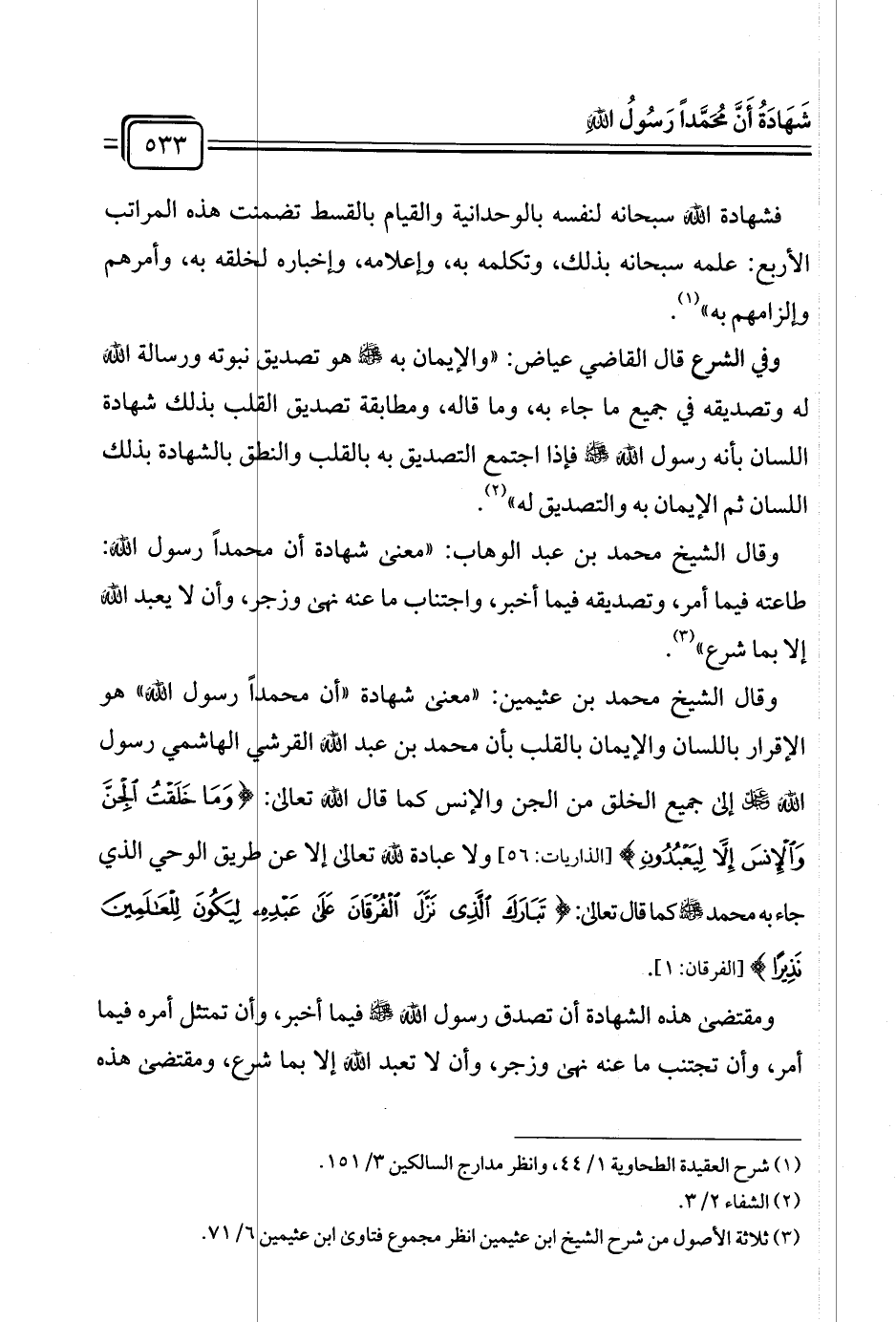 (¬٣) ثلاثة الأصول من شرح الشيخ ابن عثيمين انظر مجموع فتاوى ابن عثيمين ٦/ ٧١.