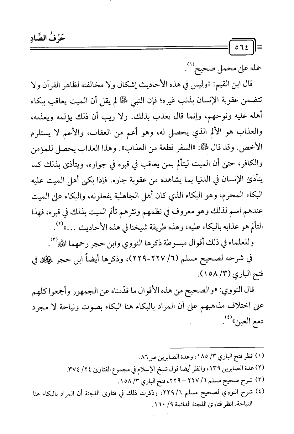 (¬٤) شرح النووي لصحيح مسلم ٦/ ٢٢٩، وذكرت ذلك في فتاوى اللجنة أن المراد بالبكاء هنا النياحة. انظر فتاوى اللجنة الدائمة ٩/ ١٦٠.