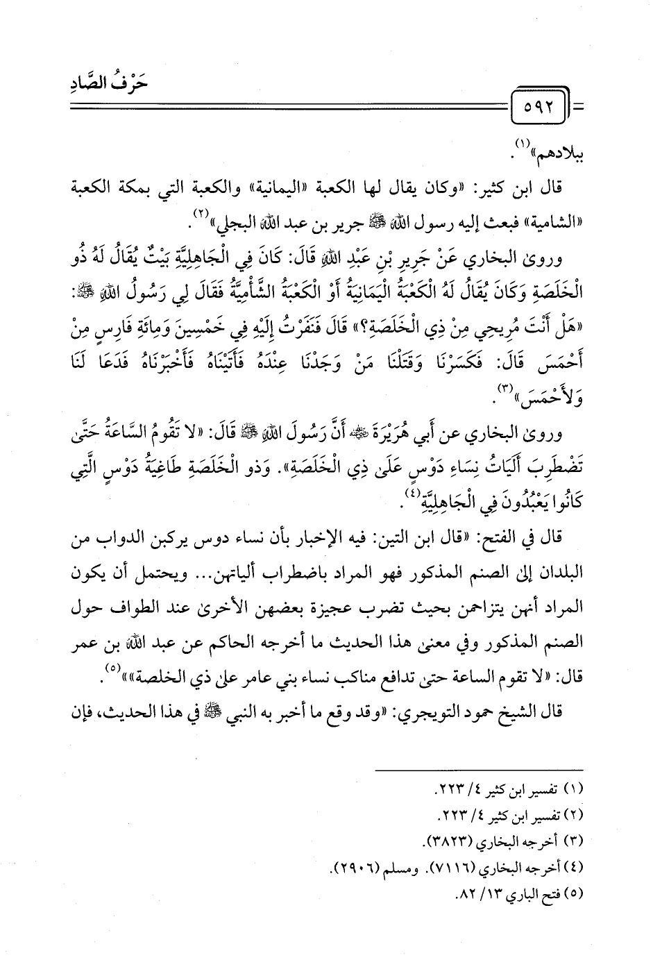 وروى البخاري عَنْ جَرِيرِ بْنِ عَبْدِ اللهِ قَالَ: كَانَ فِي الْجَاهِلِيَّةِ بَيْتٌ يُقَالُ لَهُ ذُو الْخَلَصَةِ وَكَانَ يُقَالُ لَهُ الْكَعْبَةُ الْيَمَانِيَةُ أَوْ الْكَعْبَةُ الشَّأْمِيَّةُ فَقَالَ لِي رَسُولُ الله - صلى الله عليه وسلم -: "هَلْ أَنْتَ مُرِيحِي مِنْ ذِي الْخَلَصَةِ؟ " قَالَ فَنَفَرْتُ إِلَيْهِ فِي خَمْسِينَ وَمِائَةِ فَارِسٍ مِنْ أَحْمَسَ قَالَ: فَكَسَرْنَا وَقتلْنَا مَنْ وَجَدْنَا عِنْدَهُ فَأتَيْنَاهُ فَأَخْبَرْنَاهُ فَدَعَا لَنَا وَلأَحْمَسَ" (¬٣).