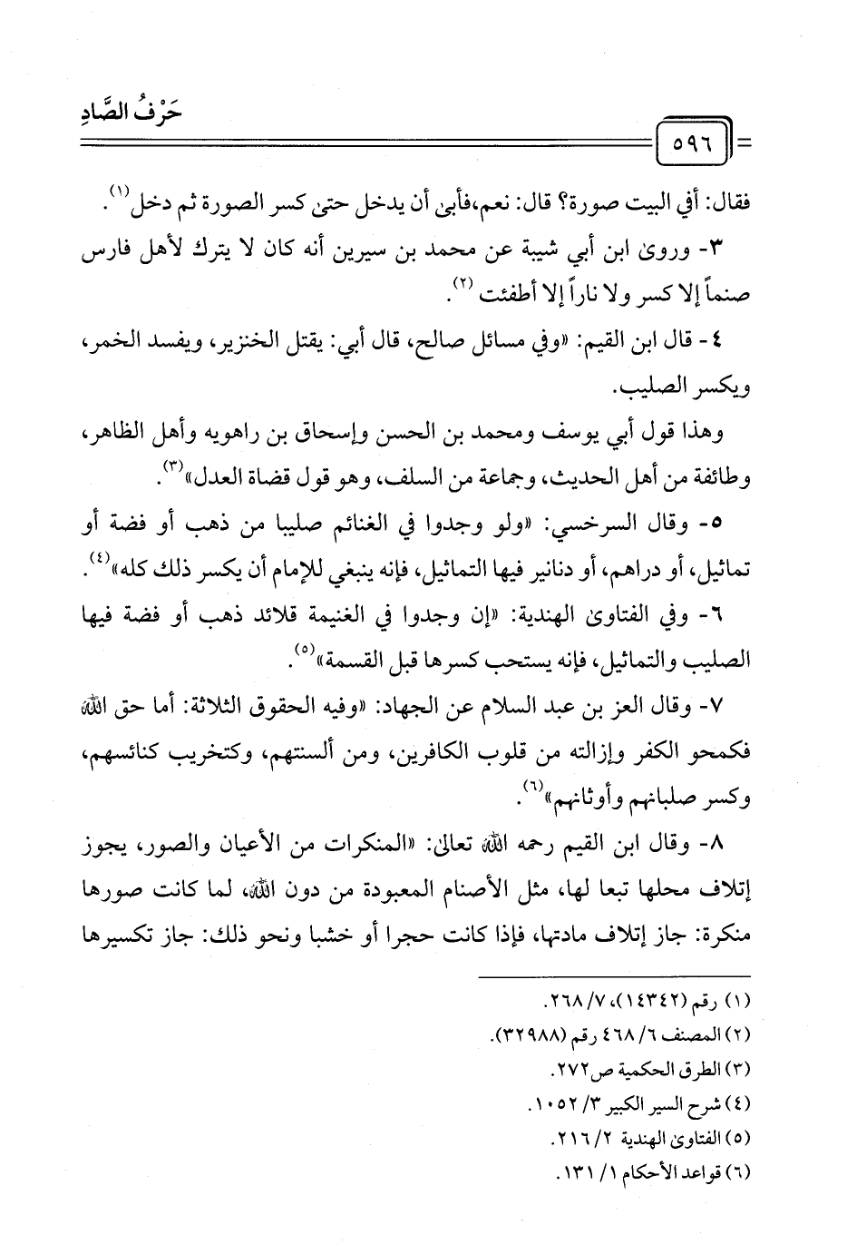٨ - وقال ابن القيم رحمه الله تعالى: "المنكرات من الأعيان والصور، يجوز إتلاف محلها تبعا لها، مثل الأصنام المعبودة من دون الله، لما كانت صورها منكرة: جاز إتلاف مادتها، فإذا كانت حجرا أو خشبا ونحو ذلك: جاز تكسيرها