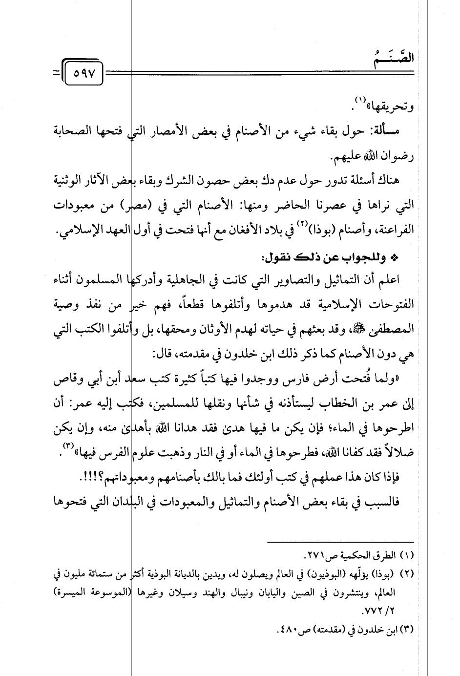 هناك أسئلة تدور حول عدم دك بعض حصون الشرك وبقاء بعض الآثار الوثنية التي نراها في عصرنا الحاضر ومنها: الأصنام التي في (مصر) من معبودات الفراعنة، وأصنام (بوذا) (¬٢) في بلاد الأفغان مع أنها فتحت في أول العهد الإسلامي.