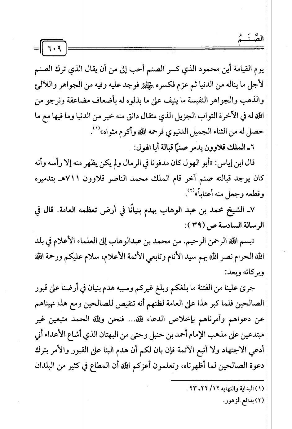 (¬١) البداية والنهاية ١٢/ ٢٢، ٢٣.